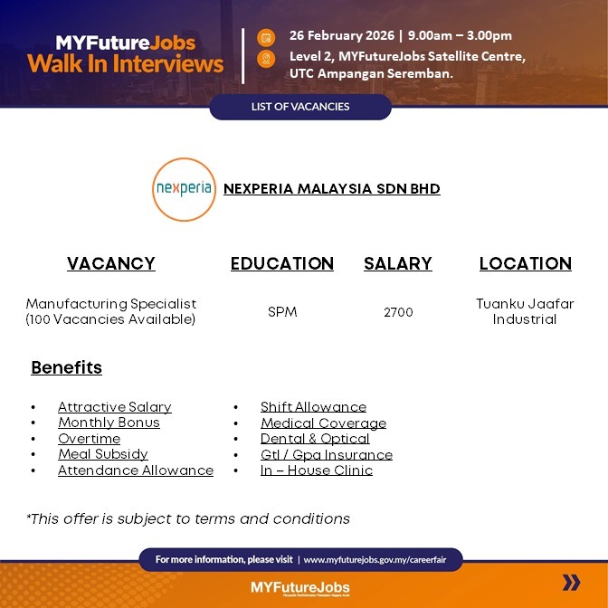 ๐Lokasi Temu Duga : Pusat Satelit MYFutureJobs, Tingkat 2, UTC Ampangan Seremban, Negeri Sembilan