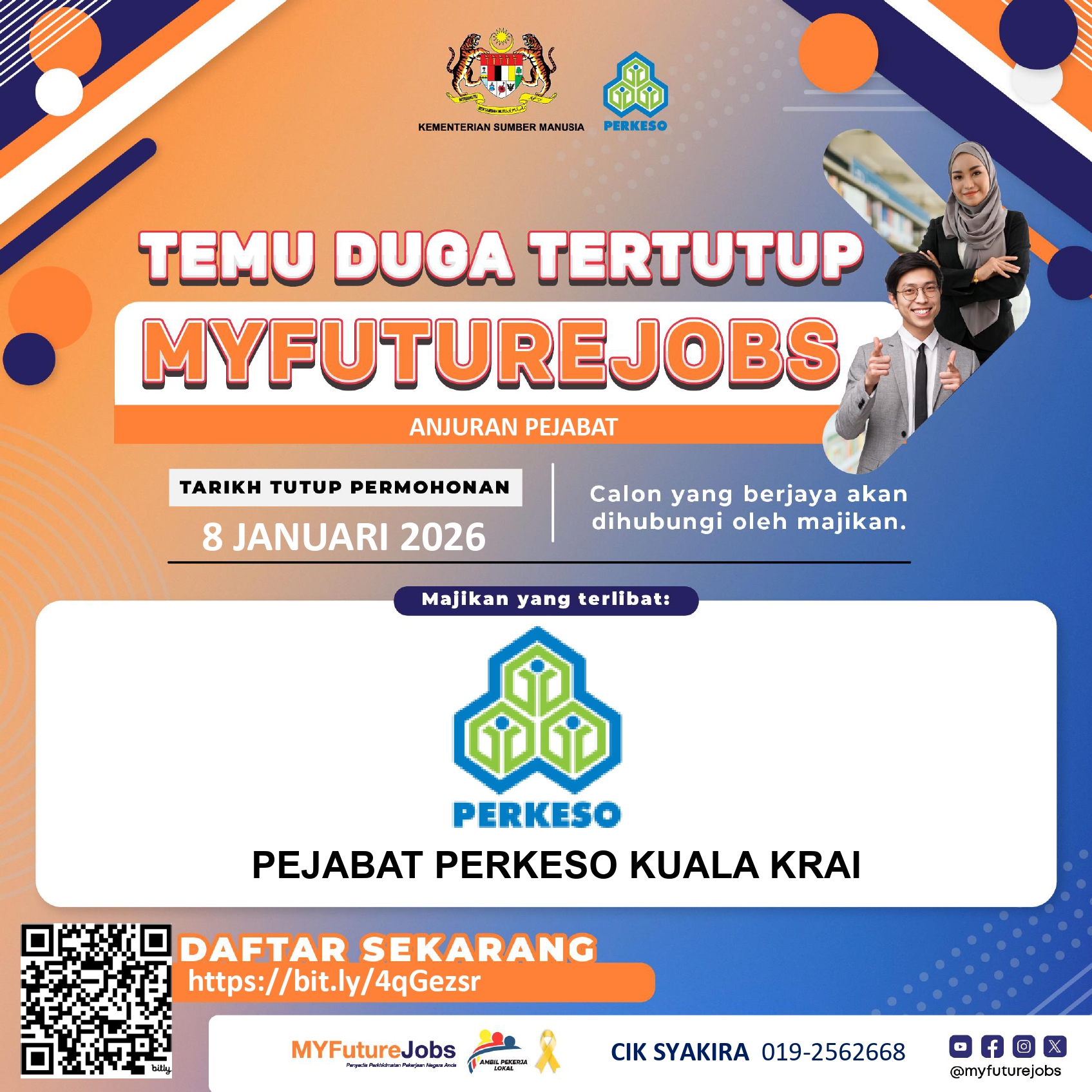 [Kekosongan Jawatan Pegawai Kerani Sambilan Gred 14 Cawangan Pejabat PERKESO Kuala Krai]