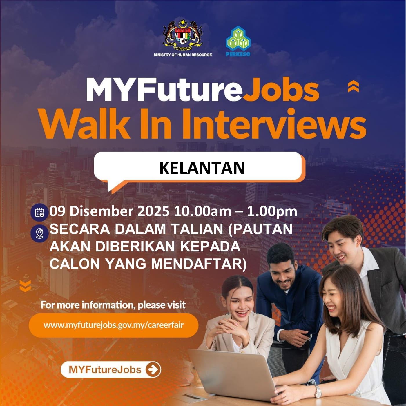Hebahan Program MYFUTUREJOBS WALK IN INTERVIEW ANJURAN PERKESO KELANTAN BERSAMA ANDRITZ SDN BHD