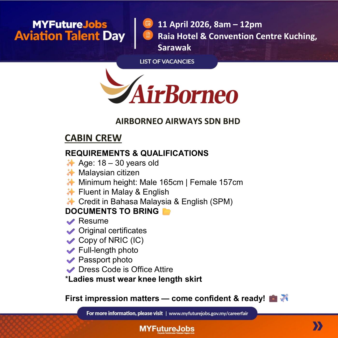 This is your chance to take off! Join us for an open interview session with AirBorneo and kickstart your journey in aviation 🌤️