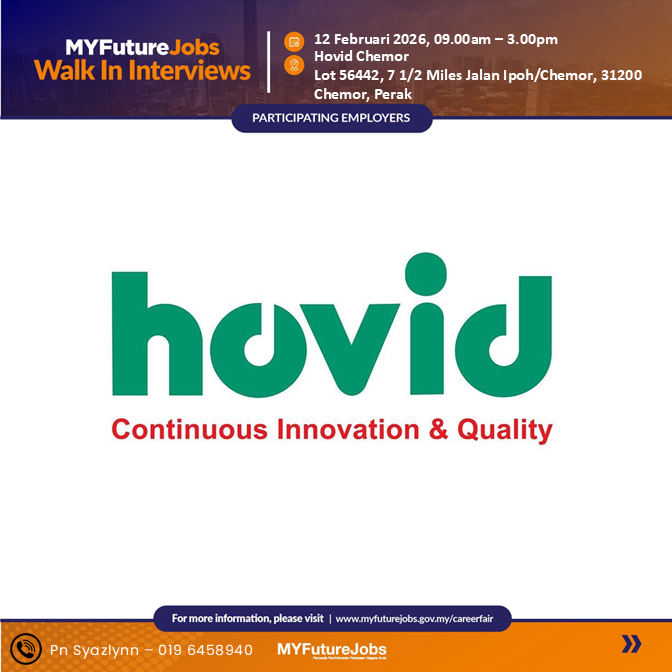 HOVID CHEMOR – WALK IN INTERVIEW MYFUTUREJOBS ANJURAN PERKESO NEGERI PERAK
