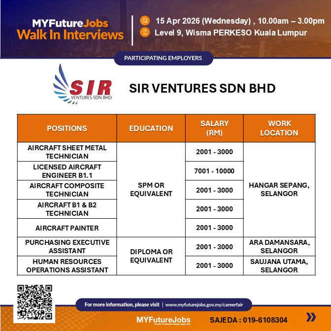JOIN US FOR WALK-IN INTERVIEW MYFUTUREJOBS WITH SIR VENTURES SDN. BHD.