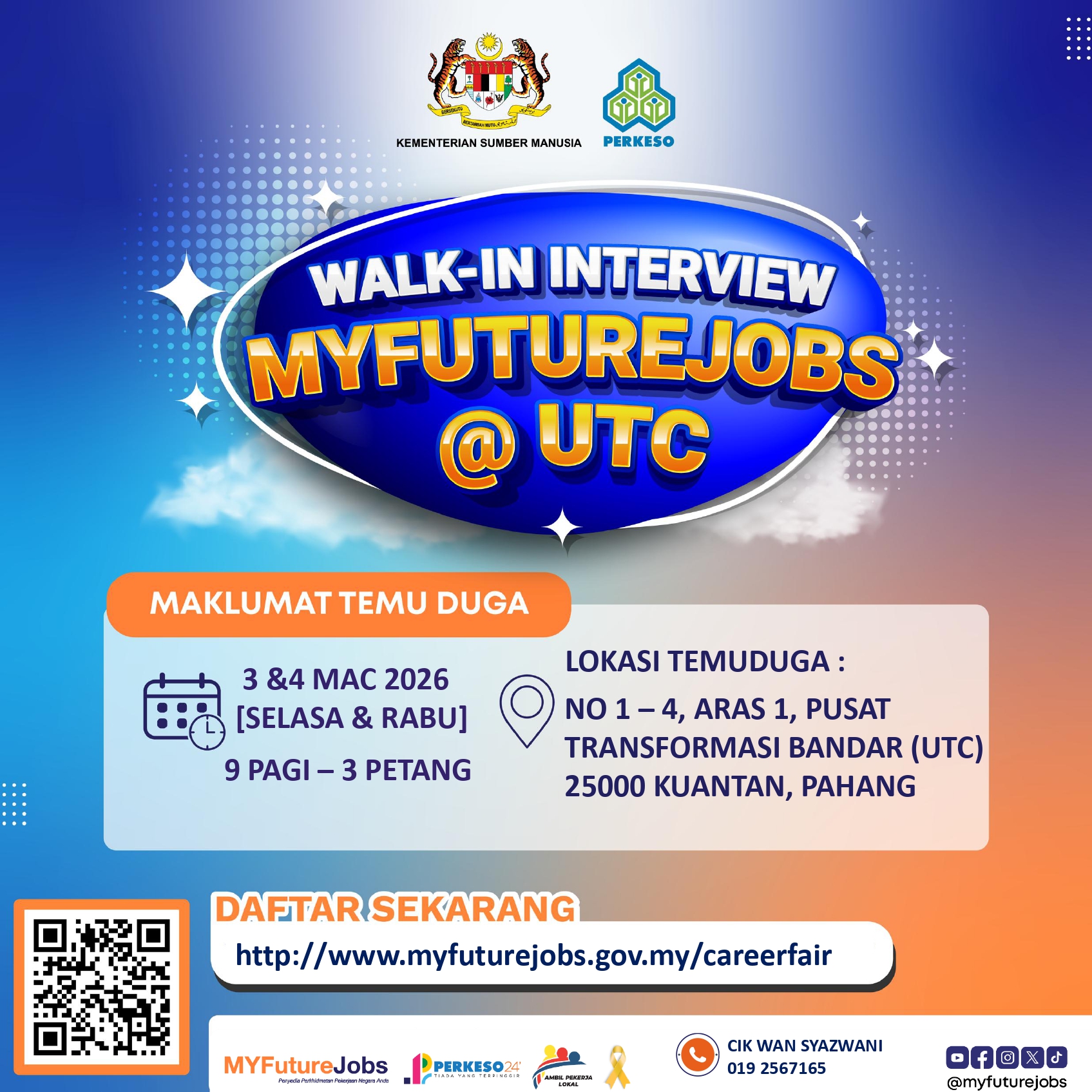 Pra pendaftaran : https://careerfair.myfuturejobs.gov.my/careerfair/socsocareerfair/daftarjobseeker.php?id=Mzk0MA==