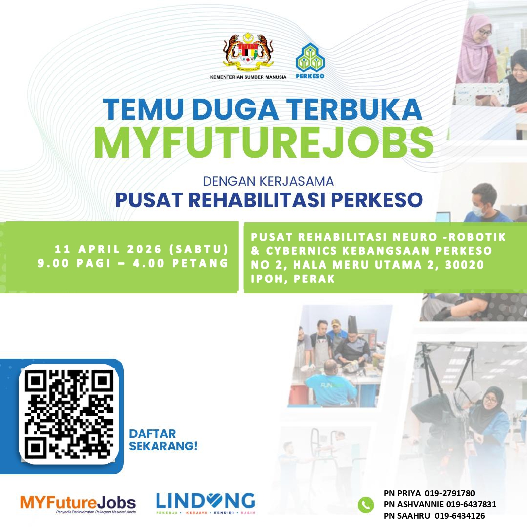 🔊TEMUDUGA TERBUKA MYFUTUREJOBS BERSAMA PUSAT REHABILITASI PERKESO ANJURAN PEJABAT PERKESO NEGERI PERAK🔊