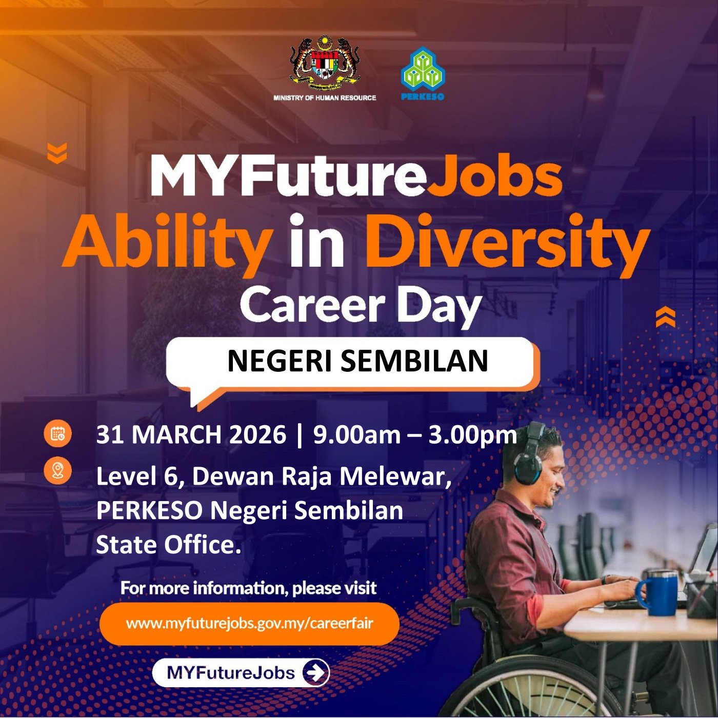 📢 MAKLUMAN MYFUTUREJOBS ABILITY IN DIVERSITY CAREER DAY (OKU) NEGERI SEMBILAN 2026