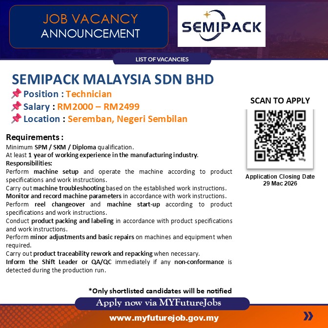 JAWATAN KOSONG RESISTANT MATERIALS TECHNICIAN DI MANTIN, NEGERI SEMBILAN