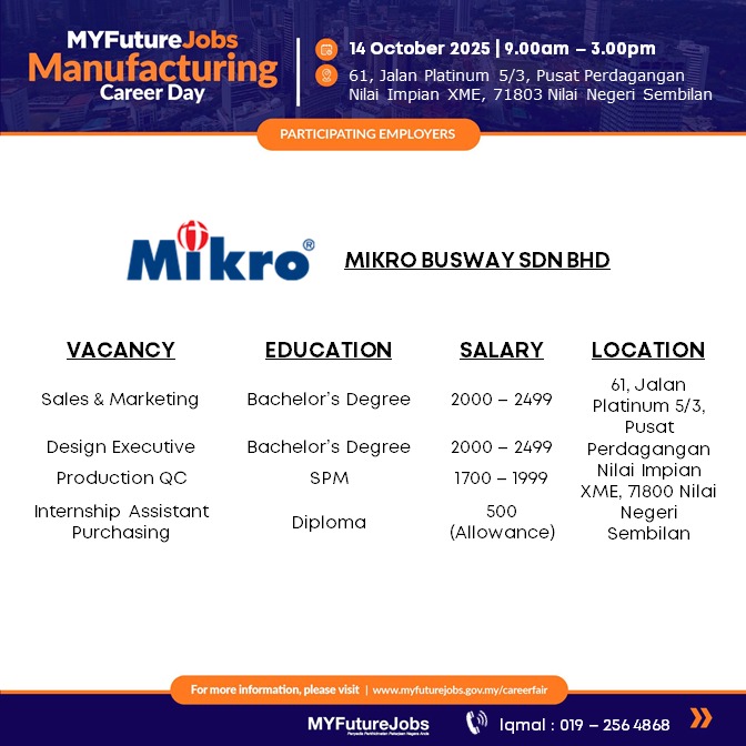 Kongsikan iklan jawatan ini pada rakan, saudara, keluarga dan kita sama sama bantu mereka yang sedang mencari kerja. Akhir kata, Selamat Maju Jaya kepada semua pencari kerja.