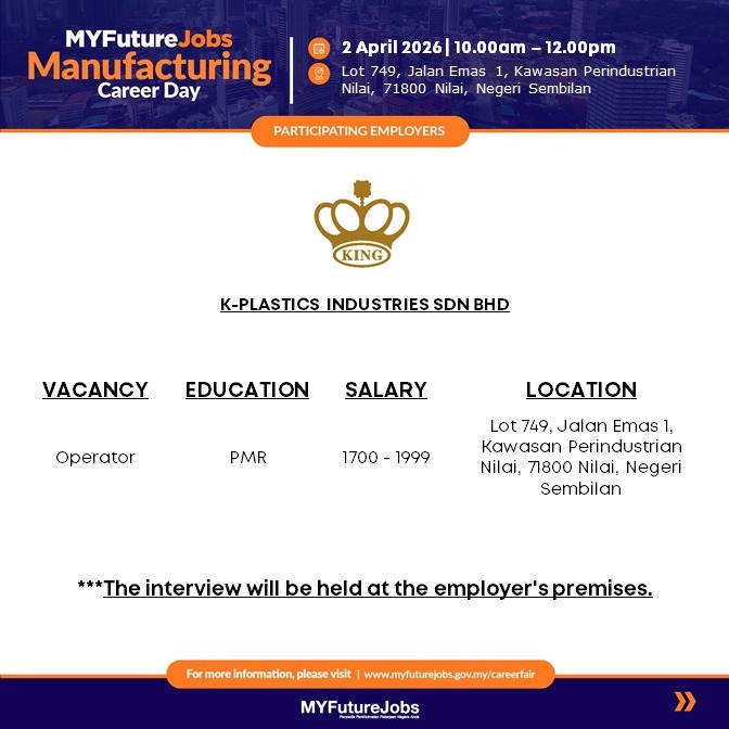 ๐Link permohonan : https://tinyurl.com/02APRIL2026KPLASTICS