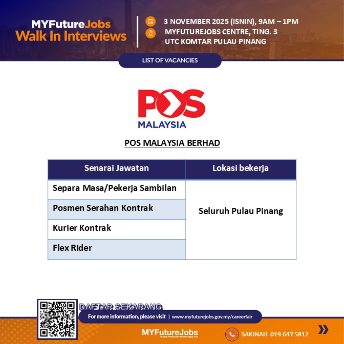 📍MyFutureJobs Centre. Ting 3, UTC Komtar, Pulau Pinang