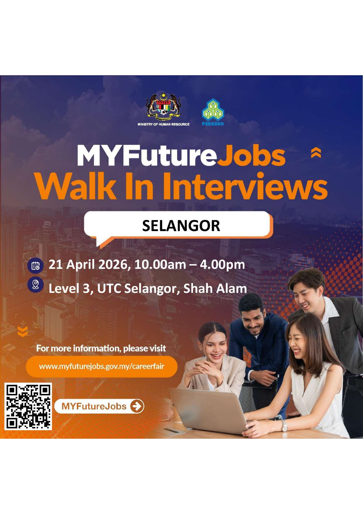 📍Tempat: MyFutureJobs Tingkat 3, UTC Selangor.