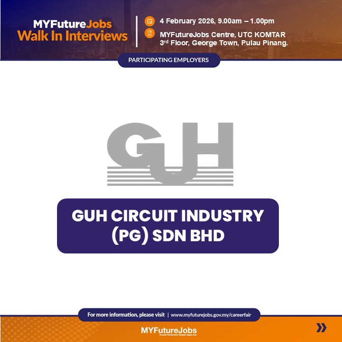 TEMUDUGA TERBUKA BERSAMA GUH INDUSTRY (PG) SDN BHD MELIBATKAN 5 JAWATAN. BUAT PENCARI KERJA DI PULAU PINANG, JANGAN LEPASKAN PELUANG INI!