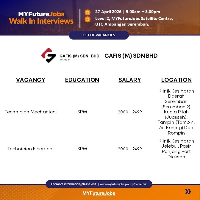 Kongsikan iklan jawatan ini pada rakan, saudara, keluarga dan kita sama sama bantu mereka yang sedang mencari kerja. Akhir kata, Selamat maju jaya kepada semua pencari kerja.