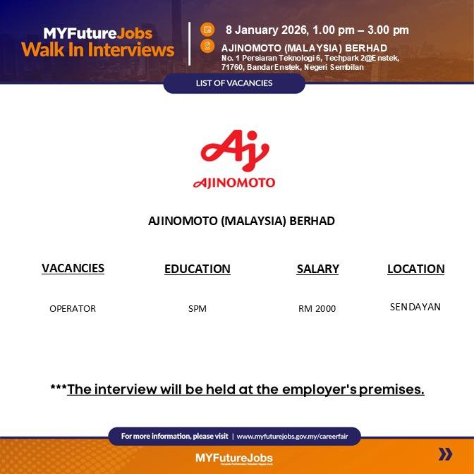 📌Lokasi : AJINOMOTO BERHAD, Bandar Enstek