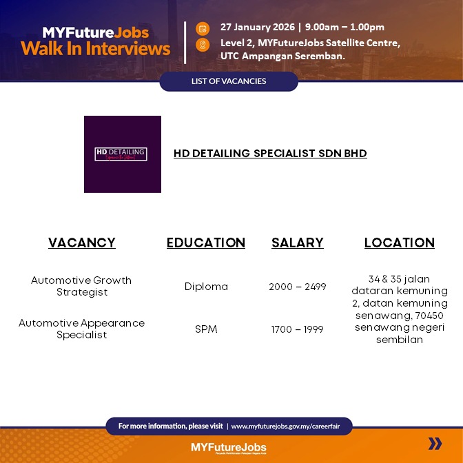 πŸ“ŒLokasi Temu Duga : Pusat Satelit MYFutureJobs, Tingkat 2, UTC Ampangan Seremban