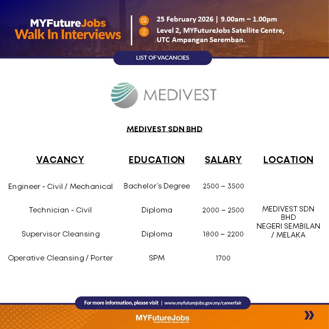 ๐Ÿ“ŒLokasi Temu Duga : Pusat Satelit MYFutureJobs, Tingkat 2, UTC Ampangan Seremban