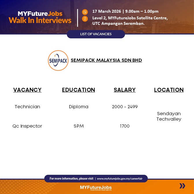 Kongsikan iklan jawatan ini pada rakan, saudara, keluarga dan kita sama sama bantu mereka yang sedang mencari kerja. Akhir kata, Selamat maju jaya kepada semua pencari kerja.