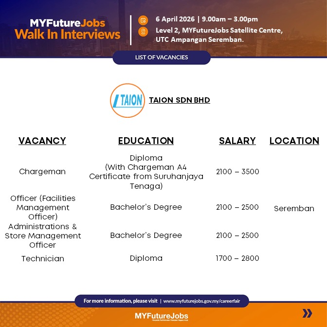 ๐Lokasi Temu Duga : Pusat Satelit MYFutureJobs, Tingkat 2, UTC Ampangan Seremban