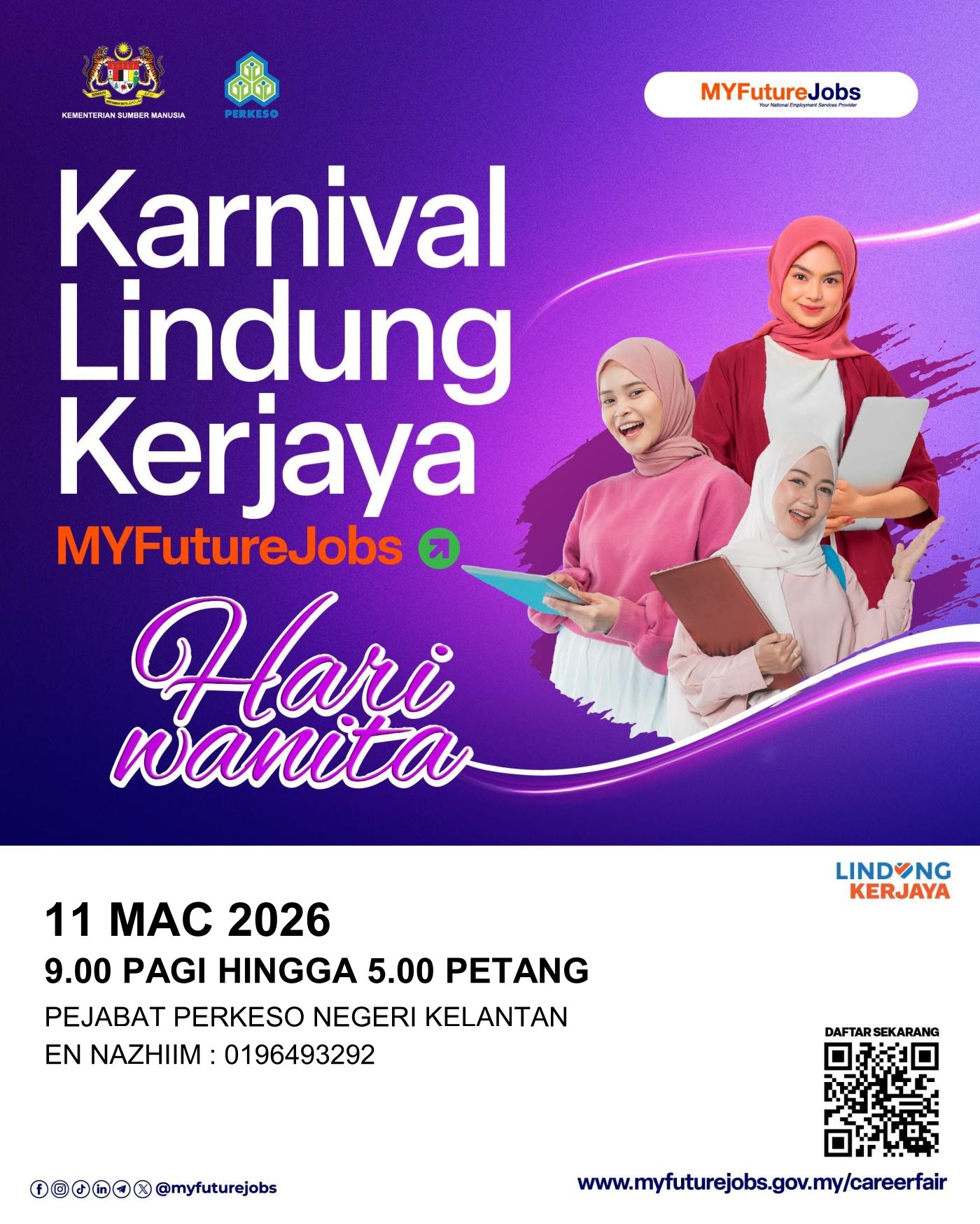 MAKLUMAN HEBAHAN PROGRAM KARNIVAL LINDUNG KERJAYA HARI WANITA ANJURAN PEJABAT PERKESO NEGERI KELANTAN