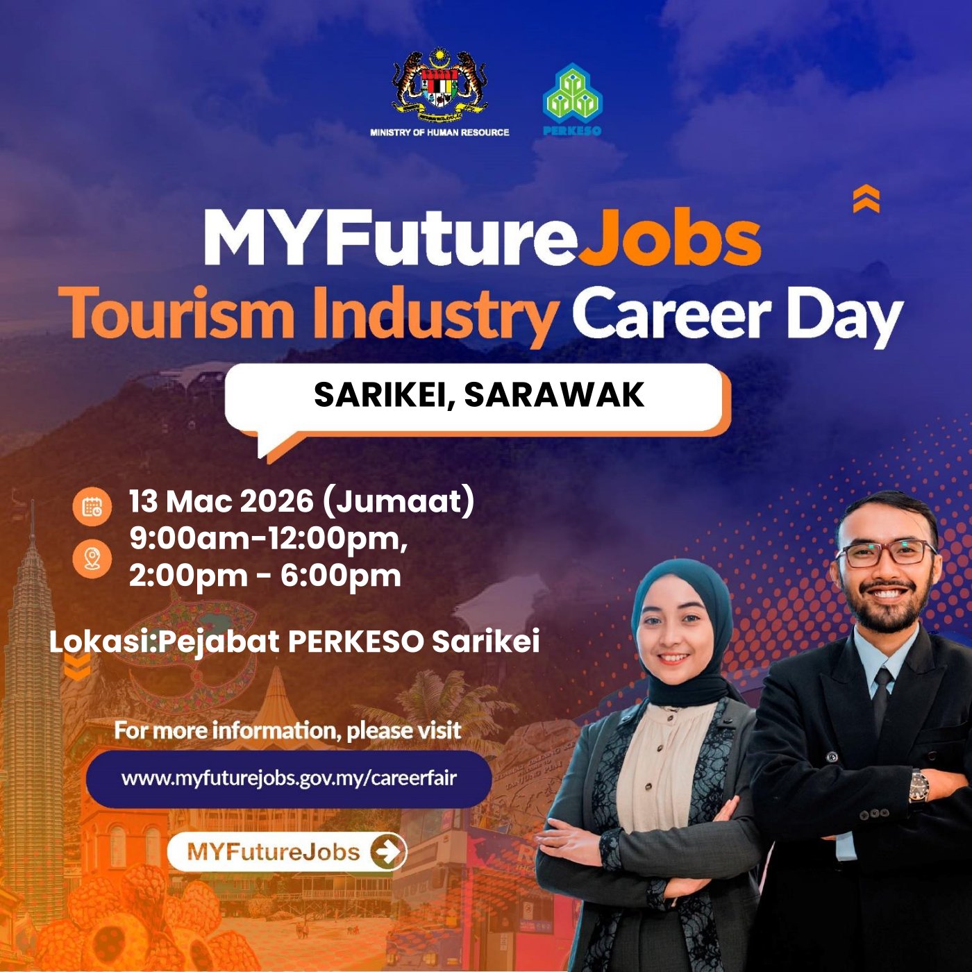 HEBAHAN PROGRAM TEMU DUGA TERBUKA ‘MYFUTUREJOBS TOURISM INDUSTRY CAREER DAY’ ANJURAN PERKESO SARIKEI