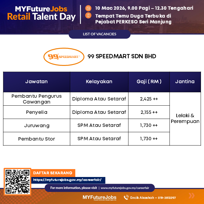 *10 Mac 2026- https://careerfair.myfuturejobs.gov.my/careerfair/socsocareerfair/daftarjobseeker.php?id=NDA5NA==*