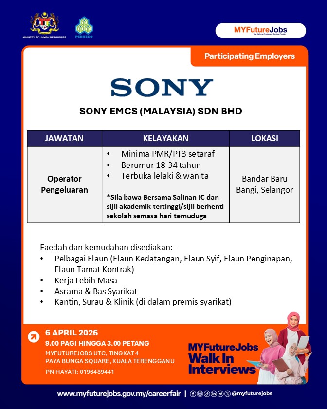 TEMPAT: MYFUTUREJOBS UTC, TINGKAT 4, PAYA BUNGA SQUARE, KUALA TERENGGANU