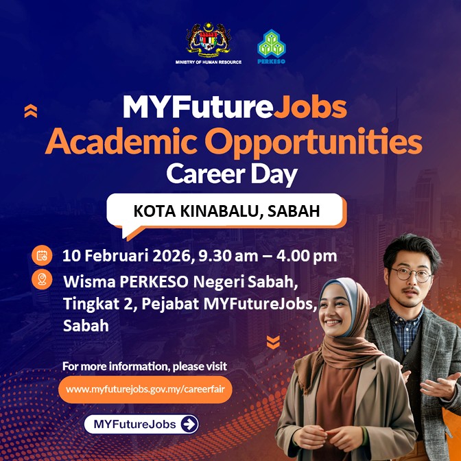 Pendaftaran: https://careerfair.myfuturejobs.gov.my/careerfair/socsocareerfair/daftarjobseeker.php?id=MzA4Nw==