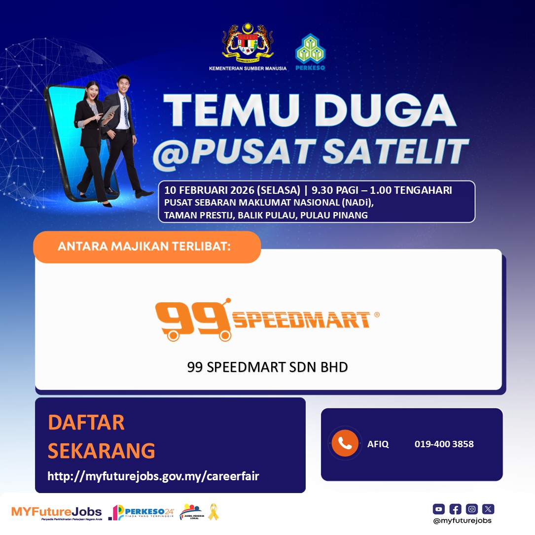 Sertai Media Sosial kami untuk mengetahui lebih maklumat Temu Duga di Pulau Pinang