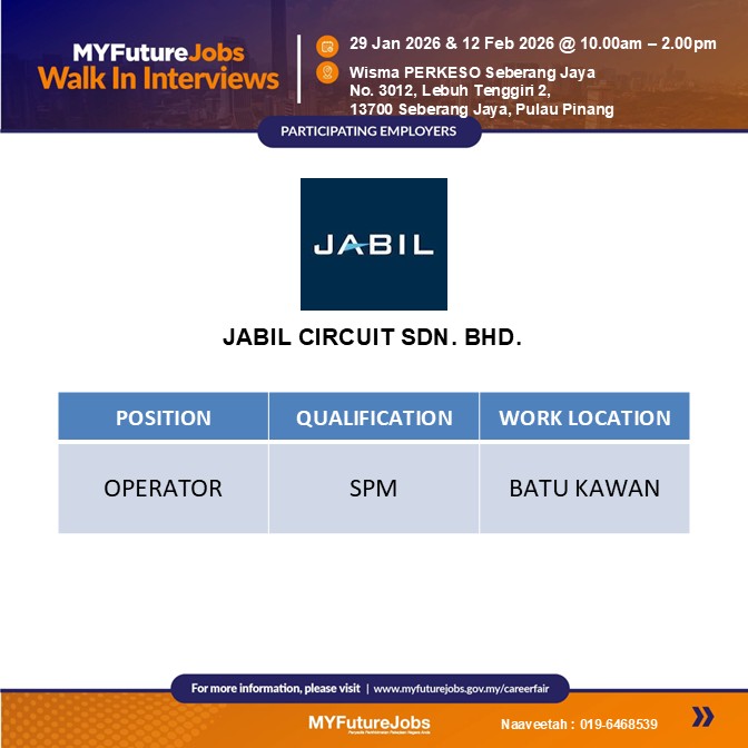 TEMU DUGA TERBUKA MYFUTUREJOBS BERSAMA MAJIKAN JABIL CIRCUIT SDN. BHD