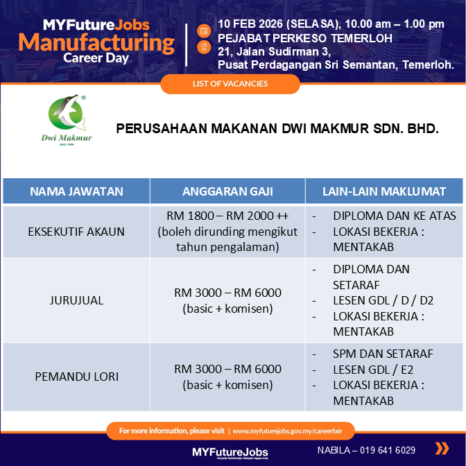 TEMU DUGA TERBUKA MYFUTUREJOBS BERSAMA MAJIKAN PERUSAHAAN MAKANAN DWI MAKMUR SDN. BHD.