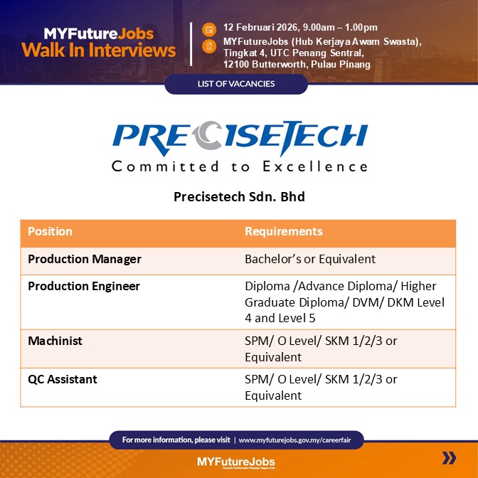 Temu Duga Terbuka MYFutureJobs Bersama Majikan Precisetech Sdn. Bhd. dan Intersurgical Medical Sdn Bhd