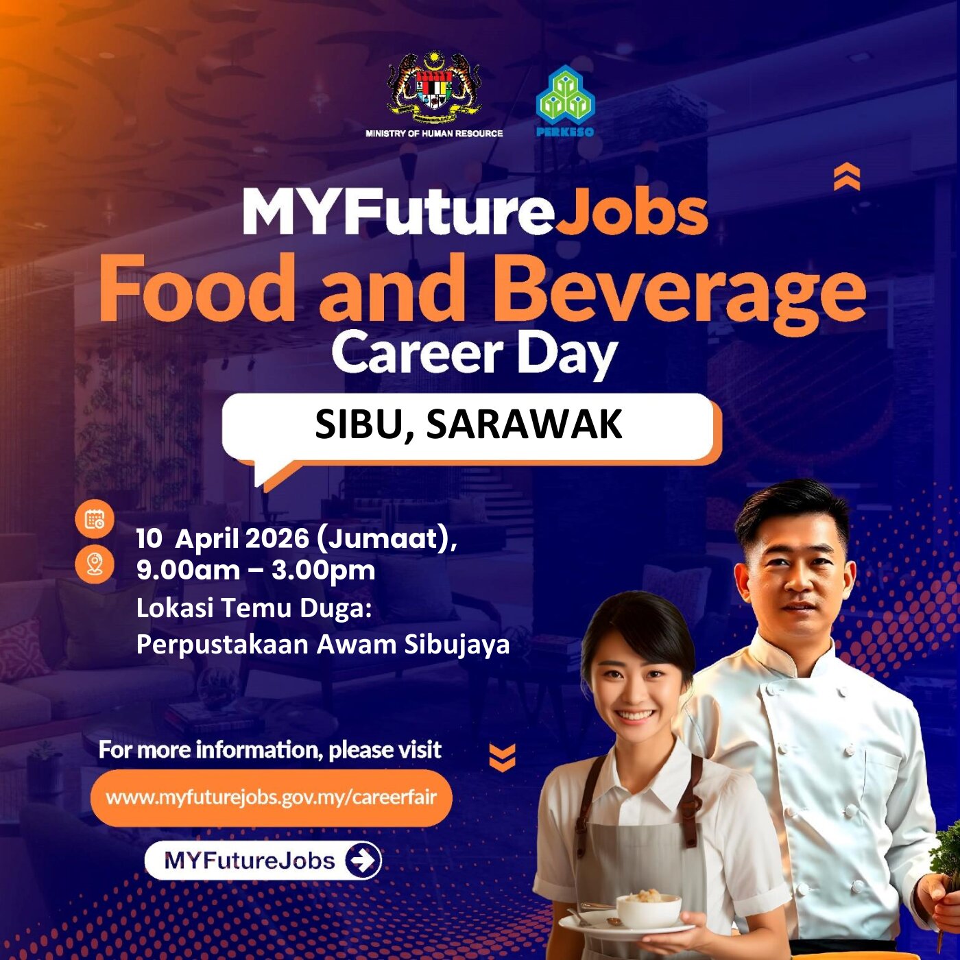 TEMU DUGA TERBUKA MYFUTUREJOBS F&B CAREER DAY DENGAN KERJASAMA SYARIKAT CERGAS NOBLE SDN BHD (SECRET RECIPE SARAWAK) ANJURAN PEJABAT PERKESO SIBU