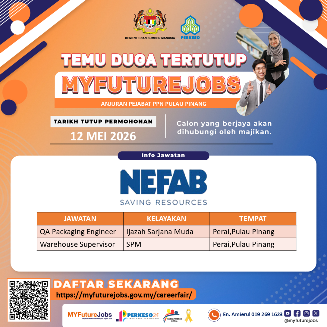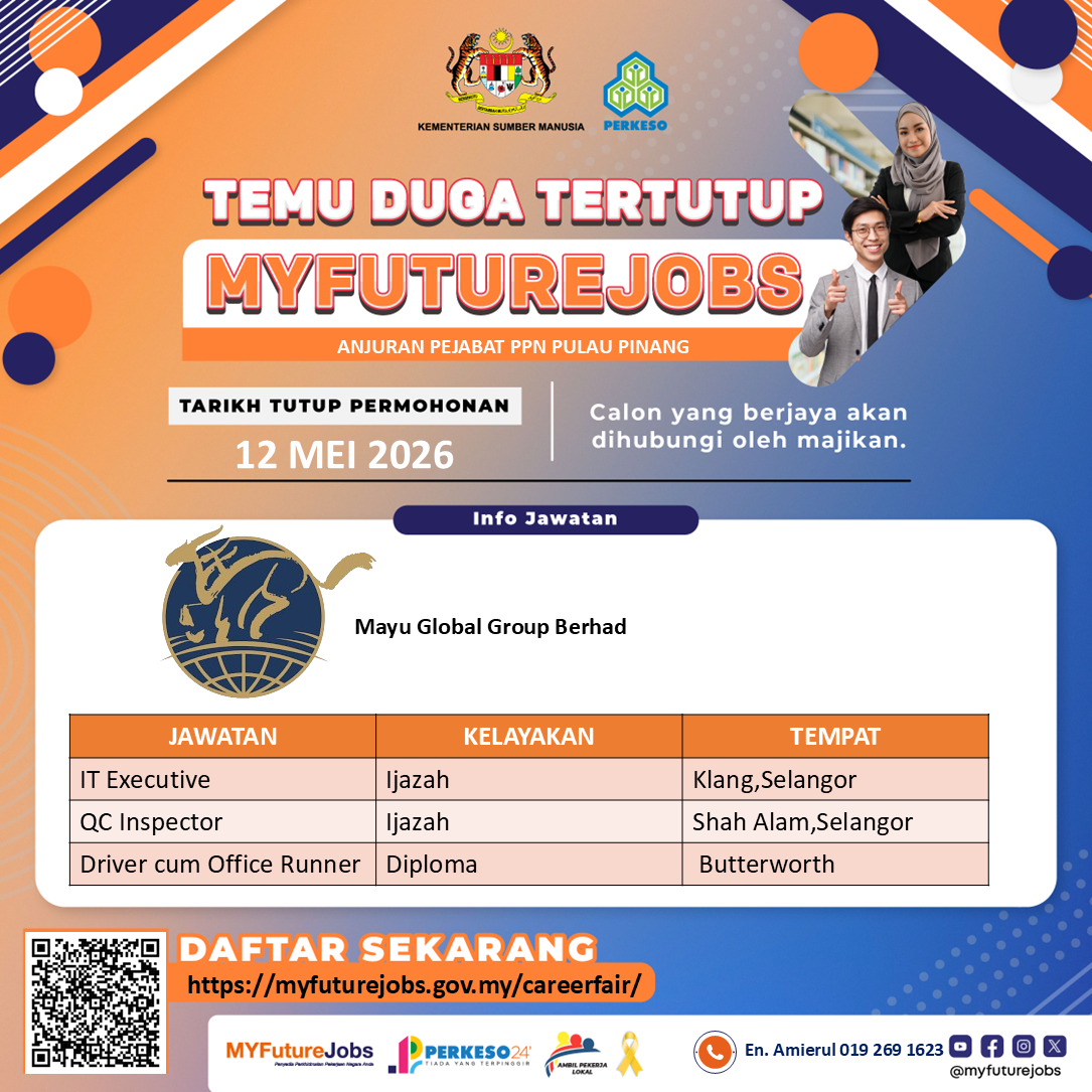 Sertai Media Sosial kami untuk mengetahui lebih maklumat Temu Duga di Pulau Pinang