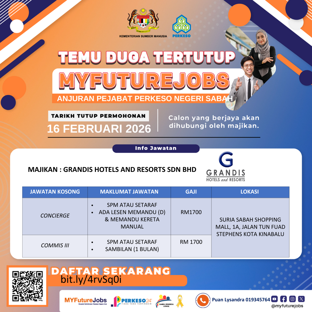 TEMU DUGA TERTUTUP MYFUTUREJOBS ANJURAN PEJABAT PERKESO NEGERI SABAH BERSAMA MAJIKAN GRANDIS HOTELS AND RESORTS SDN BHD