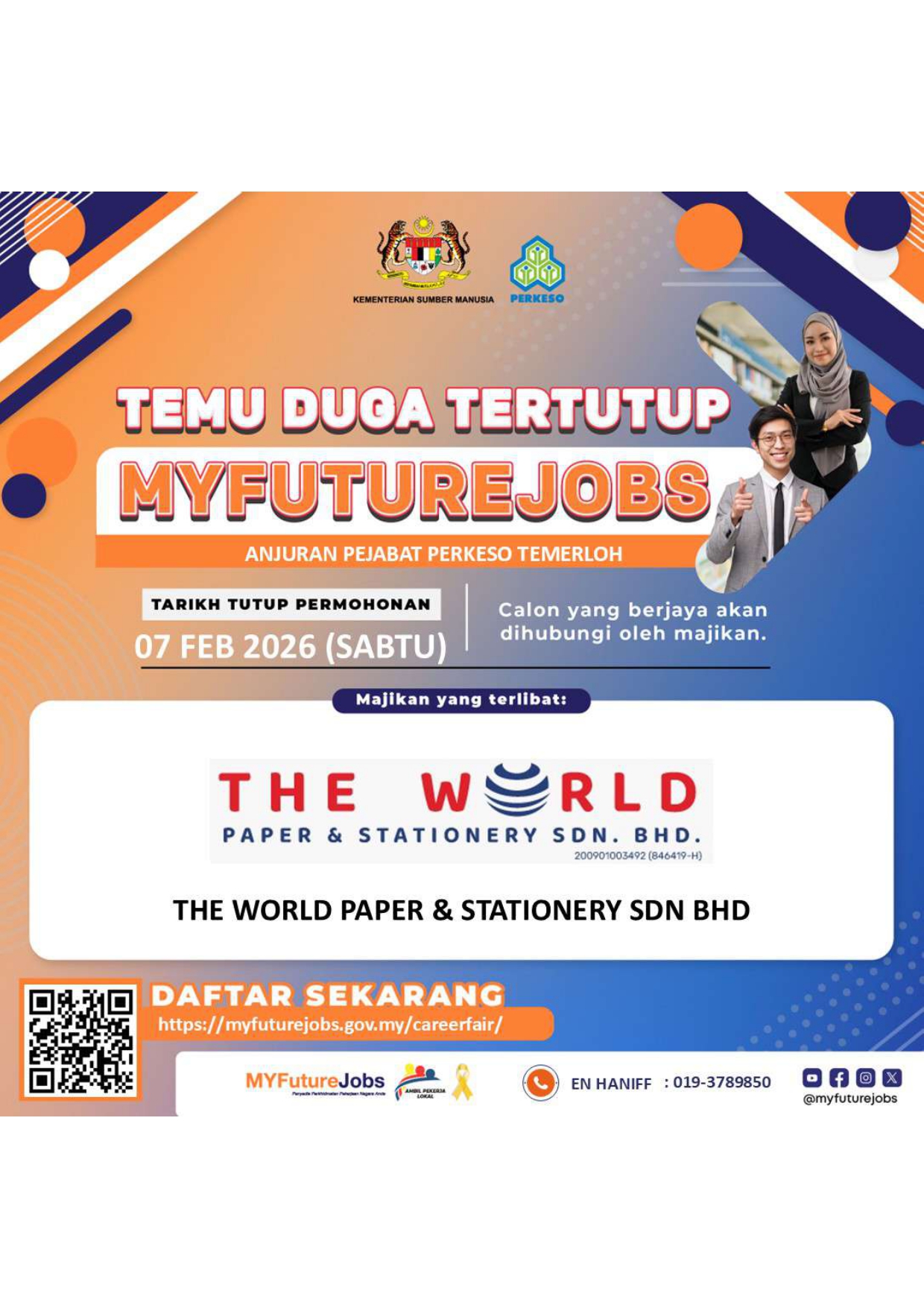[CM] TEMU DUGA TERTUTUP MYFUTUREJOBS BERSAMA THE WORLD PAPER & STATIONERY SDN BHD