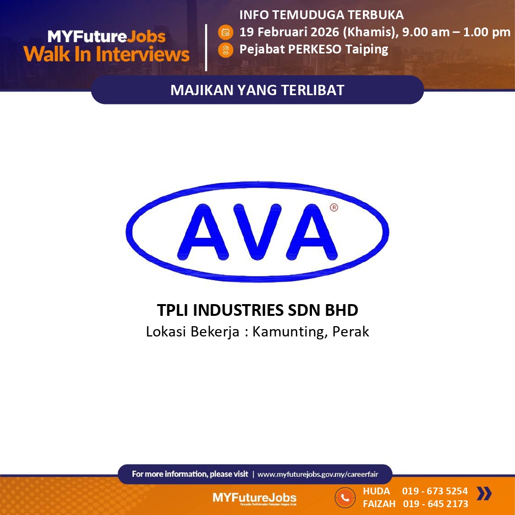 Temuduga MYFutureJobs anjuran PERKESO Taiping dengan kerjasama TPLI Industries Sdn Bhd π