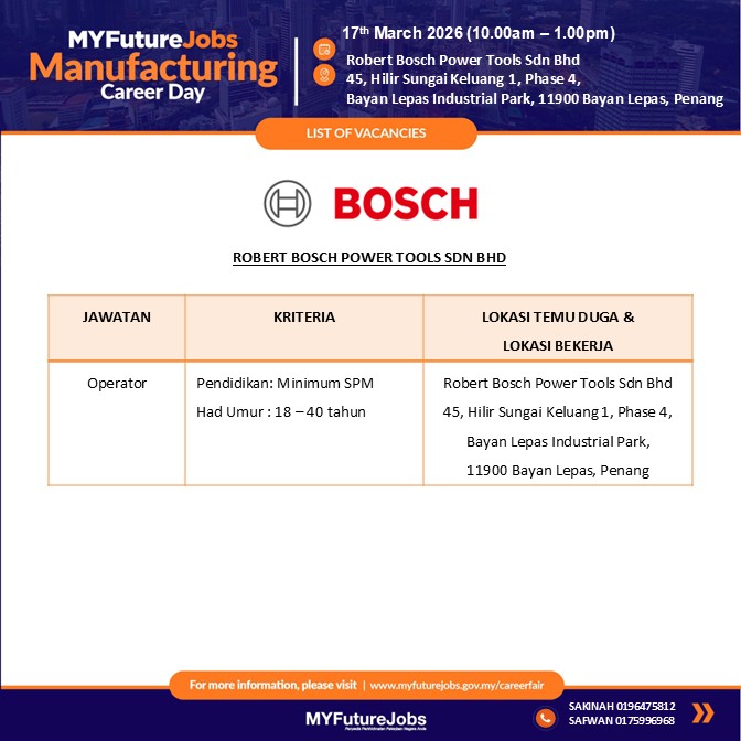 🔊 TEMUDUGA MYFUTUREJOBS BERSAMA ROBERT BOSCH POWER TOOLS SDN BHD 🔊