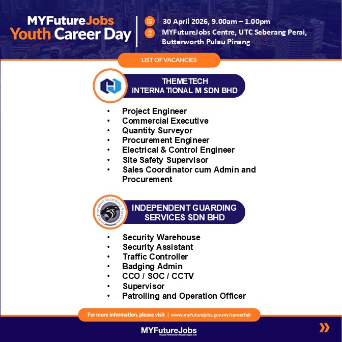 📍 MyfutureJobs Centre, UTC Seberang Perai, Butterworth, Pulau Pinang