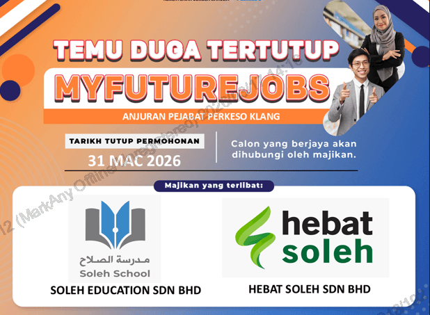 TEMUDUGA TERTUTUP MYFUTUREJOBS ANJURAN PEJABAT PERKESO KLANG BERSAMA MAJIKAN SOLEH EDUCATION GROUP