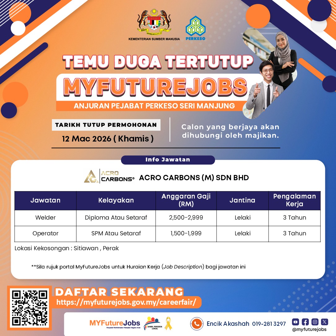 TEMUDUGA TERTUTUP MYFutureJobs Anjuran Pejabat PERKESO Seri Manjung x ACRO CARBONS (M) SDN BHD