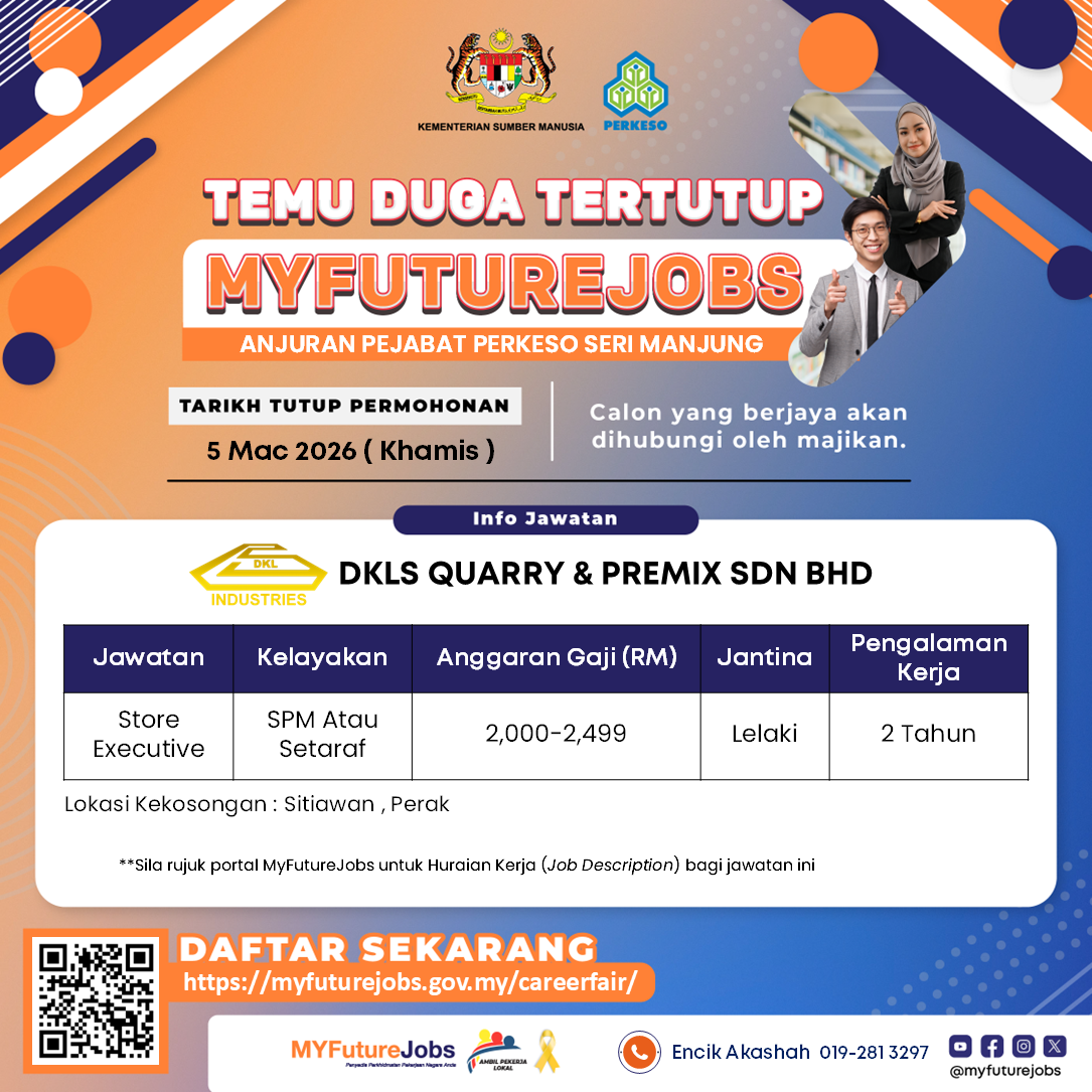 TEMUDUGA TERTUTUP MYFutureJobsAnjuran PERKESO Seri Manjung x DKLS Quarry & Premix Sdn. Bhd.