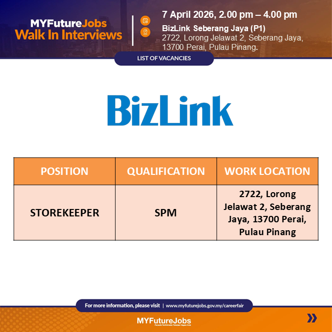 terbuka kepada semua pencari kerja untuk jawatan storekeeper