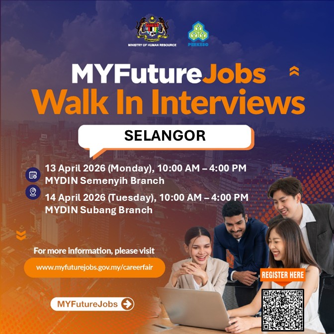 Setiap calon boleh layari www.myfuturejobs.gov.my untuk maklumat lebih lanjut mengenai jawatan kosong serta membuat permohonan pekerjaan.