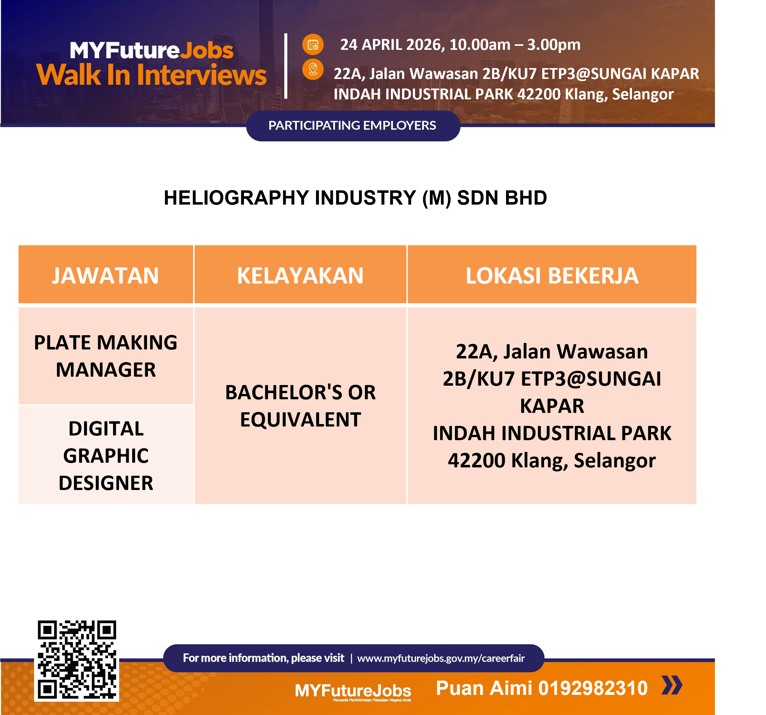 WALK IN INTERVIEW MYFUTUREJOBS Bersama Heliography Industry (M) Sdn Bhd ✨💼