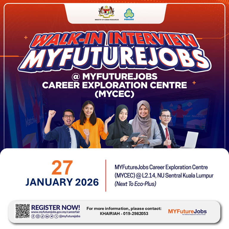 🛎 Venue: MYFutureJobs Career Exploration Centre (MYCEC), L2.14, NU Sentral, Kuala Lumpur (Next to Eco-Plus)