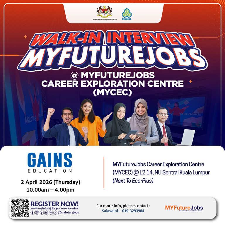 #WalkInInterview #GAINSEducation #MYFutureJobs #CareerOpportunity #HiringNow #TemuDuga #JobMalaysia
