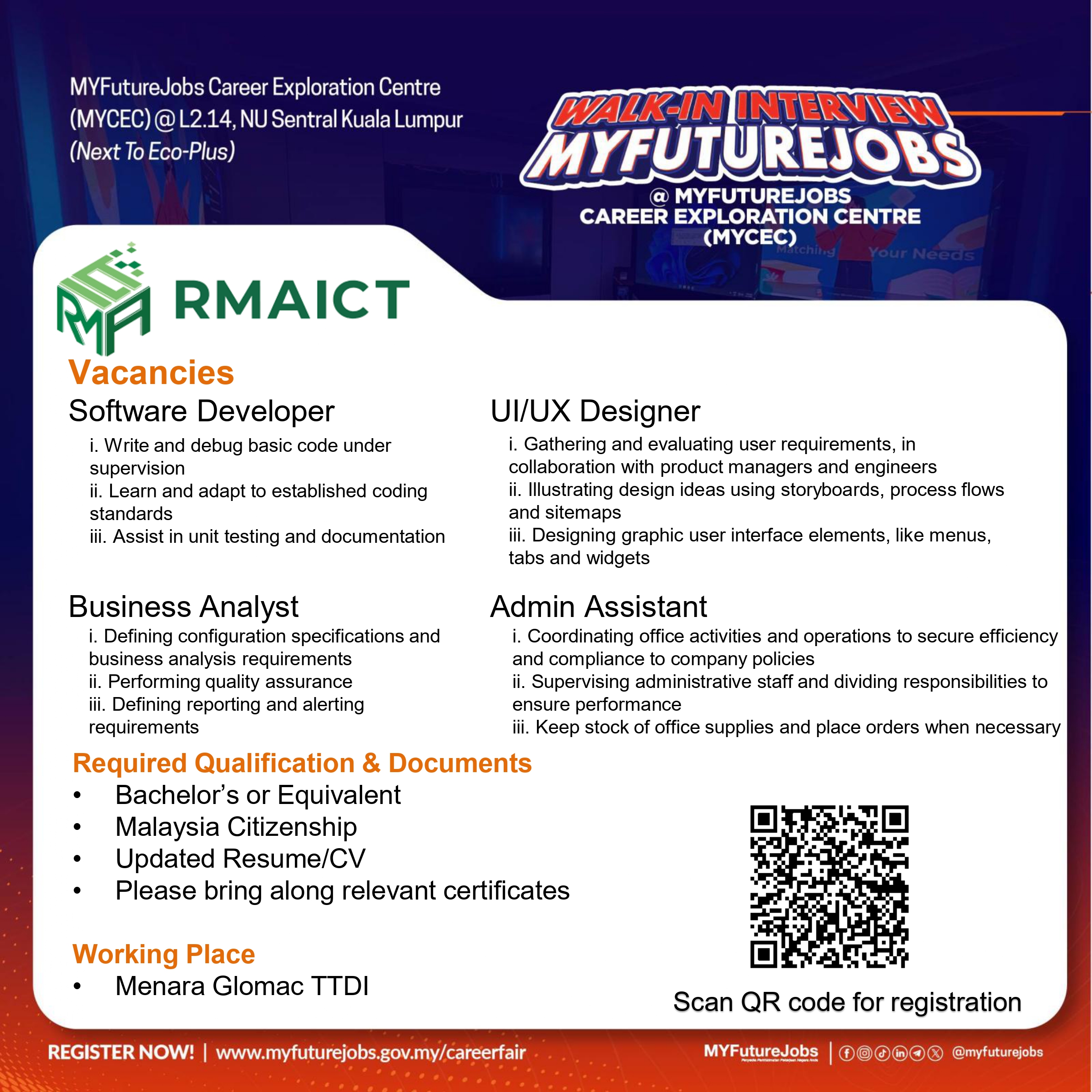 Walk-In Temuduga @ MYCEC bersama RMAICT Sdn. Bhd.
