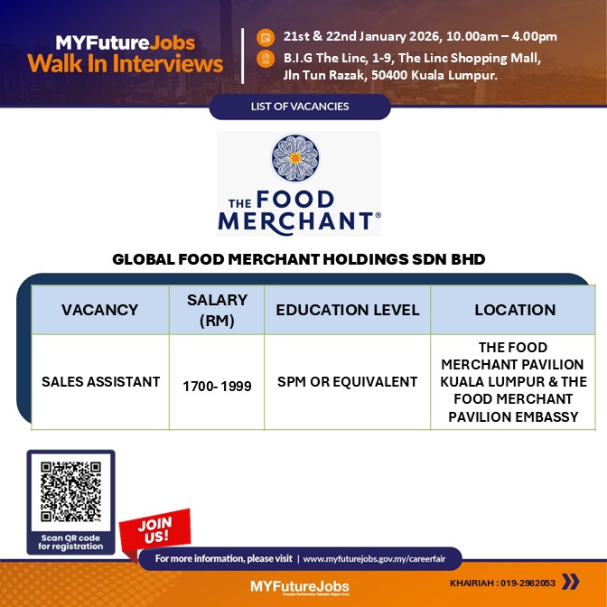 JOIN US FOR WALK-IN INTERVIEW MYFUTUREJOBS WITH GLOBAL FOOD MERCHANT HOLDINGS SDN BHD