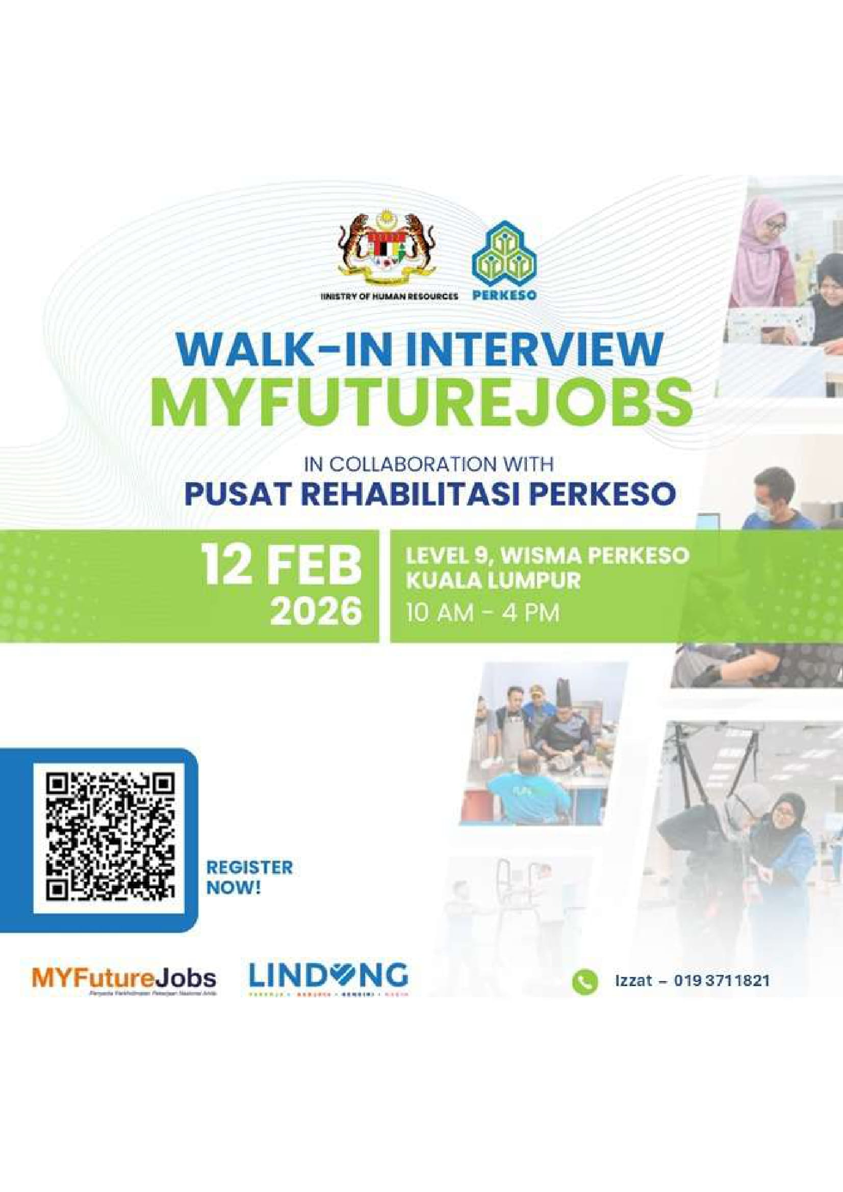 Join us for a WALK-IN INTERVIEW MYFUTUREJOBS with PUSAT REHABILITASI PERKESO