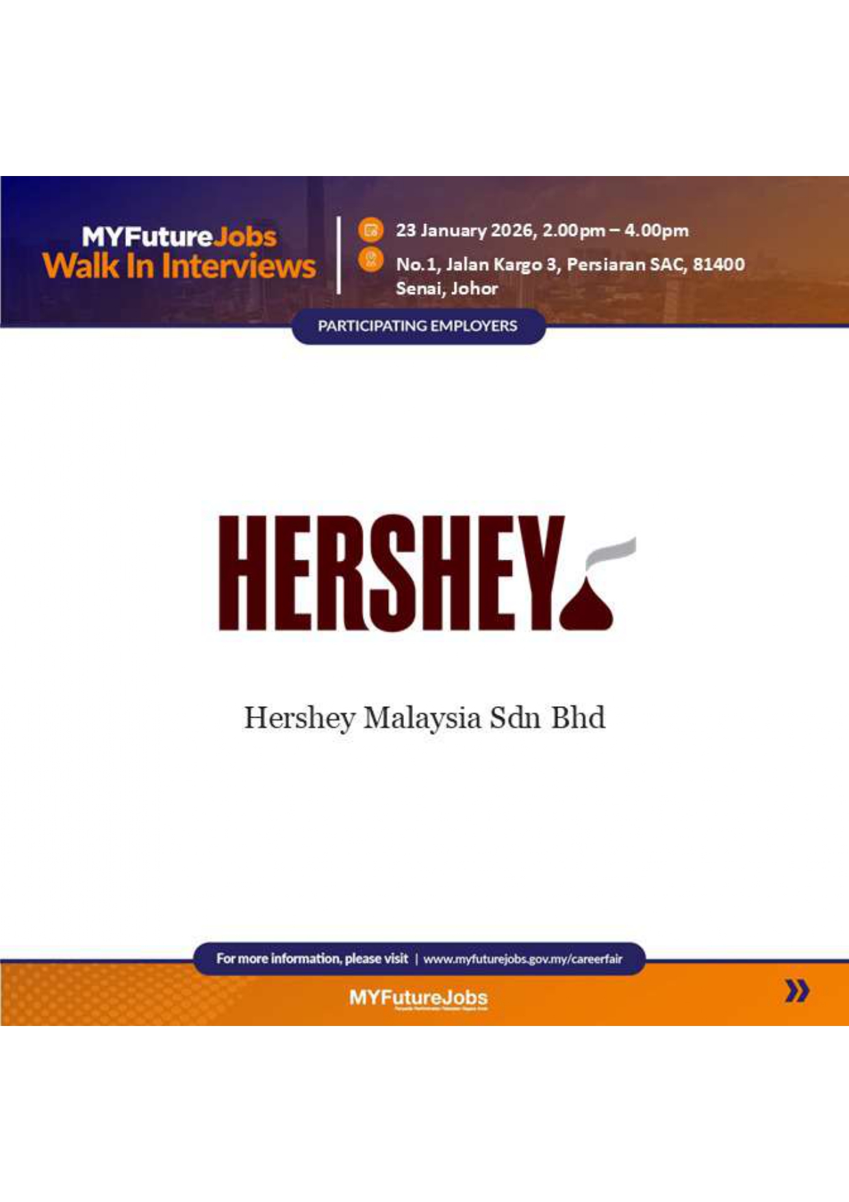 🍫JOIN OUR WALK-IN INTERVIEW WITH HERSHEY MALAYSIA!